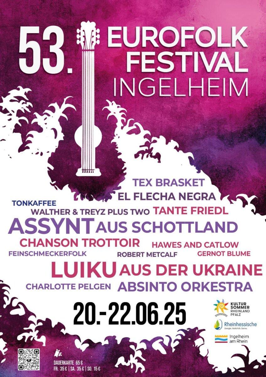 Jedes Jahr im Frühsommer treffen sich rund um die Burgkirche im rheinhessischen Ingelheim zahlreiche Musikfans aus ganz Deutschland und aus der Region zum Eurofolk Festival. Mit seiner 53. Ausgabe ist die in diesem Jahr vom 20. bis 22. Juni stattfindende Veranstaltung schon so etwas wie ein Dinosaurier unter den Folkfestivals – in der Tradition der legendären Festivals auf der Luftlinie nur rund achtzig Kilometer entfernten Burg Waldeck Ende der Sechziger gehört „das Folk“, wie es gerne genannt wird, zu den traditionsreichsten Veranstaltungen seiner Art in Deutschland.
