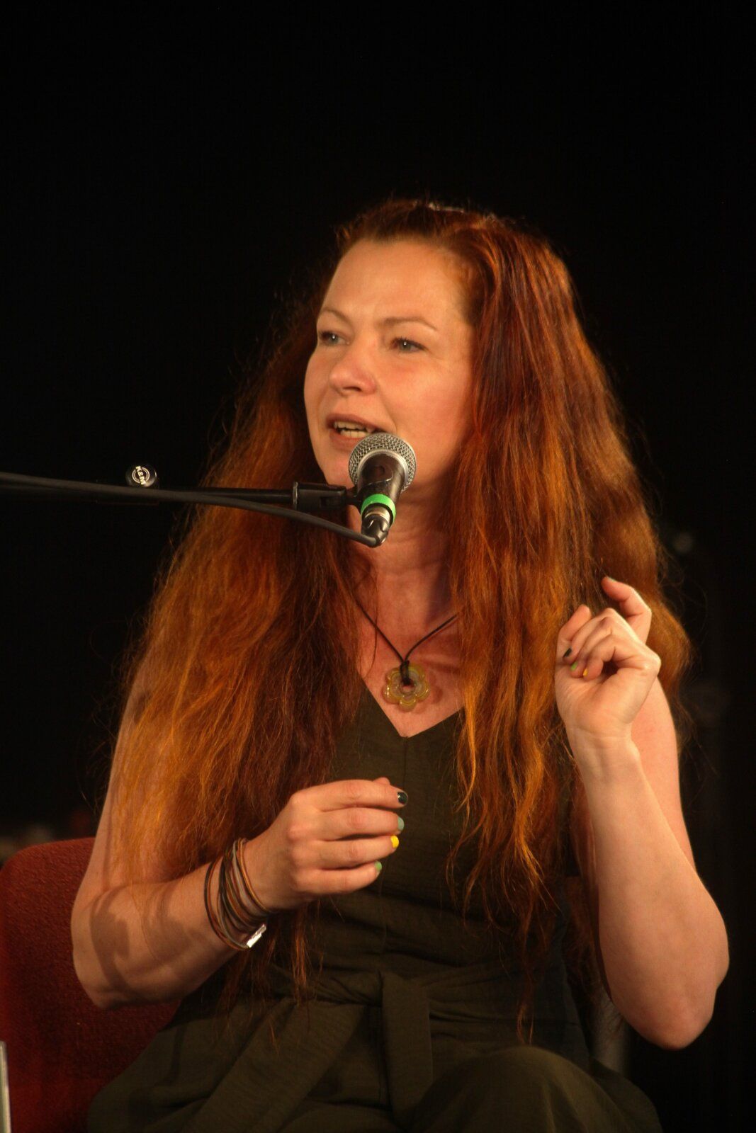 Der Schminkkasten, die Studiobühne des Rudolstädter Theaters, bietet dem folker während des Festivals die Bühne für sein Talk-mit-Musik-Format „Mike Kamp trifft …“. Am Festivalsonntag um 11.00 Uhr erlebte eine eingeschworene Schar Folkfans eine zwar noch müde, aber dennoch jugendlich frische Gudrun Walther, bekannt vor allem durch ihre Bands Deitsch und Cara, die voller mitreißender Faszination vom Großprojekt des Jugendfolkorchesters (JFO) erzählte und davon, wie sie biografisch zu all dem kam. Zwischendurch gab sie – zum ersten Mal als Solomusikerin – ausgewählte Stücke auf der Geige sowie ein Abschiedslied zum Besten.