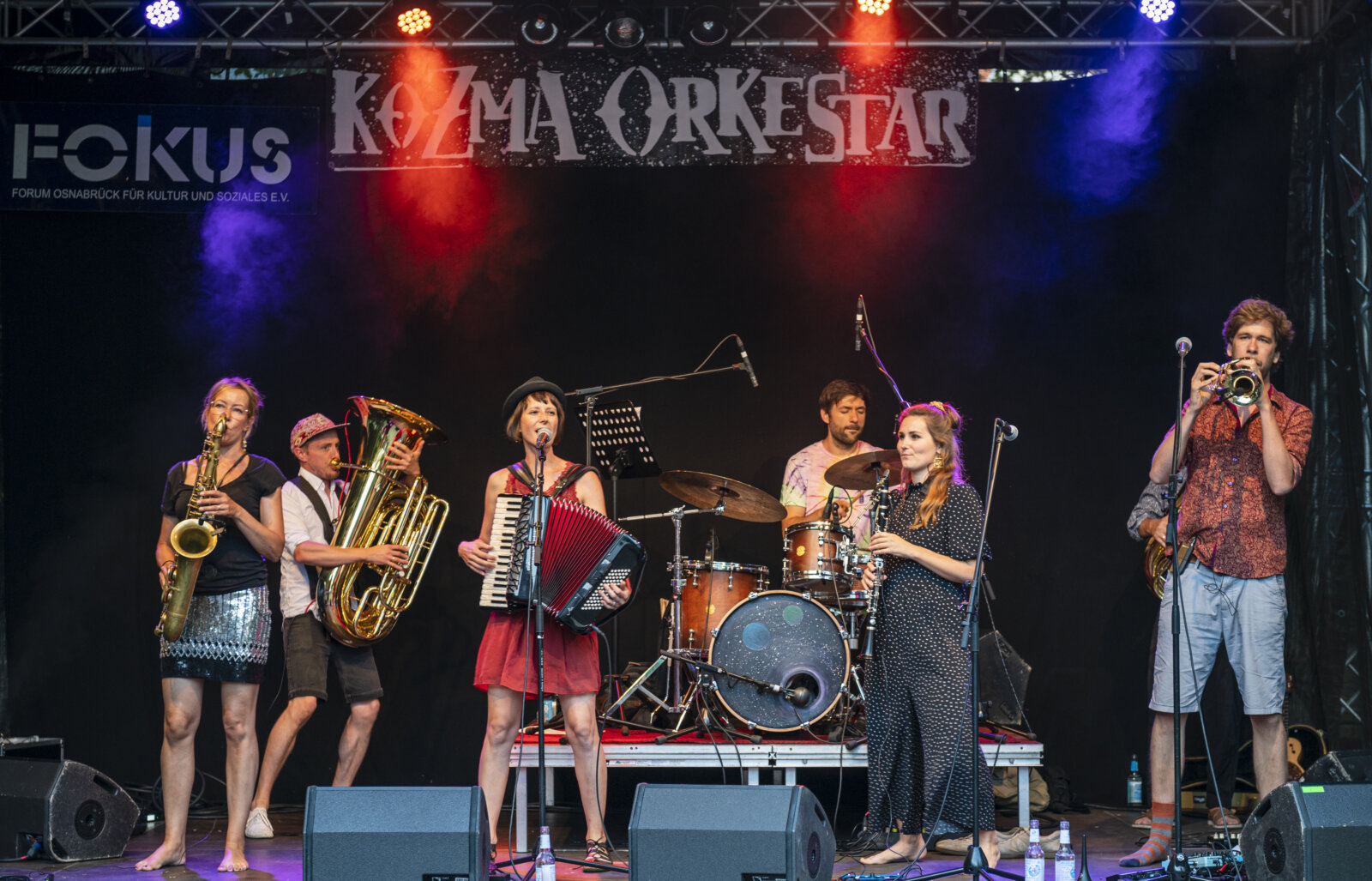 Völlig andere Töne schlägt das Kozma Orkestar an. Gegründet einst als Protestband gegen Kürzungen an der Bielefelder Universität, entwickelte sich daraus eine Formation, die Balkan Brass mit unbändiger Spielfreude feiert. Hier geht es um Tanzen, Feiern, gemeinsames Erleben. Zugleich verbirgt sich auch hier viel Reflexion: Kozma lässt sich nicht nur von serbischen Brassbands oder den Filmmusiken eines Emir Kusturica inspirieren, sondern ebenso von der französischen Fanfarentradition, die Folk, Funk und Theater mischt.