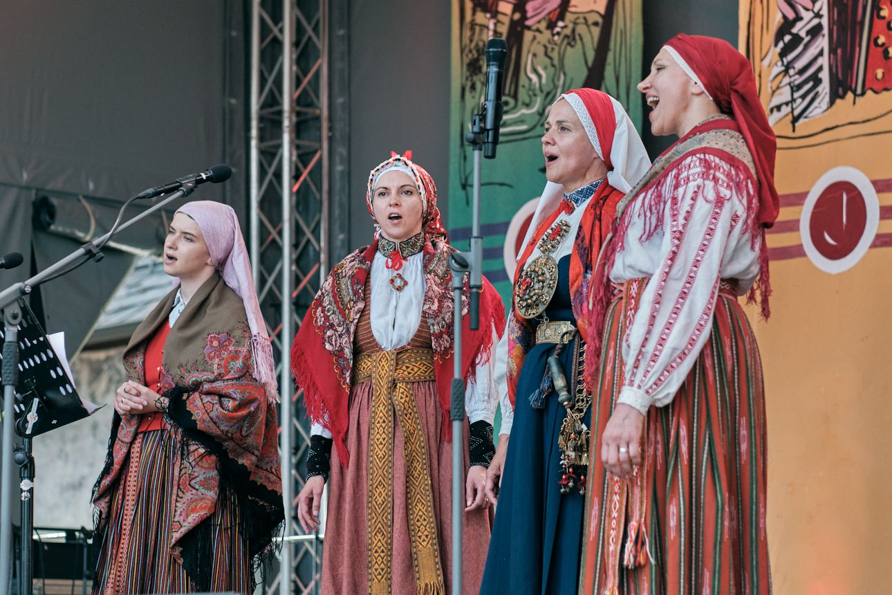 Als die Saucējas („Ruferinnen“) an einem sonnigen Julisamstag auf der Bühne der Burgterrasse beim Rudolstadt-Festival 2025 auftreten, wird die Welt um sie herum still. Sie sind zu viert aus Rīga gekommen, um ihre achtköpfige Gruppe zu repräsentieren. Im Lied wird in einem Dialog zwischen zwei Schwestern klar, warum die jüngere nicht heiraten möchte. „Welchen Mann bekomme ich?“, fragt sie die ältere. „Einen Säufer!“, antwortet diese. Das Publikum lacht und versinkt im harmonischen Klang der Liedfassung dieser Geschichte. Ein anderes – sibirisches – Lied voller slawischer Musikelemente spiegelt das Schicksal der Letten wider, die einst nach Sibirien verschleppt wurden und in der Musik ihre kulturelle Identität bewahrt haben. Dann singt Marta Konevāle ein Wiegenlied in livischer Sprache, die dem Finnischen ähnelt – es stammt aus einer katholisch geprägten Region, während Lettland überwiegend protestantisch ist.