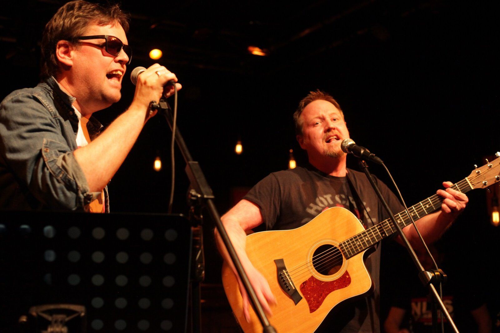 Der erste Abend begann mit Zack die Waldfee. André Jungmann (Gesang) und Sebastian Becker (Gitarre, Gesang) aus Theley im moselfränkischen Norden des Saarlandes bilden das Duo mit dem merkwürdigen Namen, der vor über dreißig Jahren in einer durchzechten Nacht entstand. Ihre Lieder handeln vom Wegrationalisieren älterer Mitarbeitender, vom dummen Geschwätz in der Kneipe, von der „Roschdworschdbud“ („Bratwurstbude“) als lukullischer und sozialer Institution oder vom Vermissen der Liebsten mit dem mundartpoetischen Geständnis: „Eich vermisse Deich!“