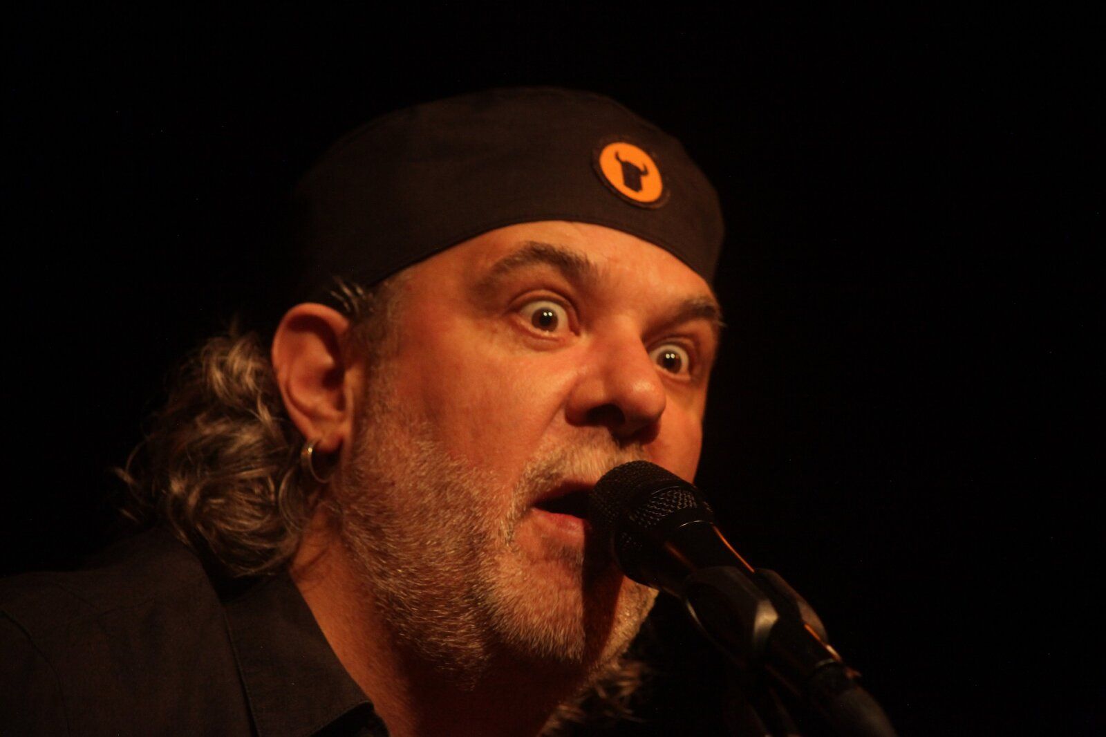 Zwei Acts gab es noch am Sonntagabend, der ersten war Festivalleiter Manuel Sattler höchstselbst. Seine recht rockig vorgetragenen Lieder in „Saarbrigger“ Platt erinnerten teilweise an die seines ripuarischen Kollegen Wolfgang Niedecken. Sie handelten vom „Toptourist“, der durch „modernen Ablasshandel“ reisenderweise nebenher das Klima retten will, von „Gertrud und Gudrun“, einem lesbischen Paar in seiner Nachbarschaft, von einer unangenehmen Sachbearbeiterin bei der Agentur für Arbeit aus der Zeit, in der er arbeitssuchend war – ein Lied, das heute in Rheinland-Pfalz zur Schulung des Sachbearbeiternachwuchses verwendet würde, wie Sattler augenzwinkernd erklärte. Man merkte ihm die Freude über das gelungene Festival an, und er versäumte es nicht, sich ausgiebig bei allen zu bedanken, die dazu beitrugen, von finanziell Unterstützenden bis zu den Leuten an der Theke und der Technik.